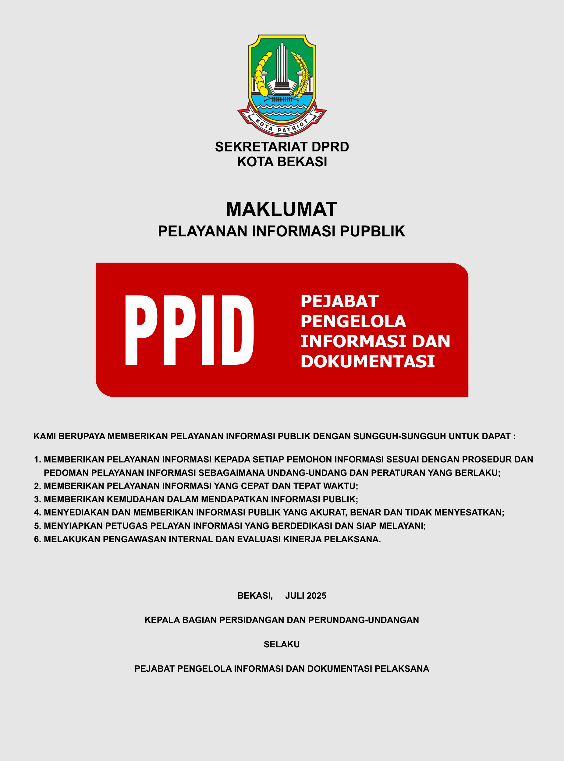 PPID PELAKSANA Sekretariat DPRD Kota Bekasi